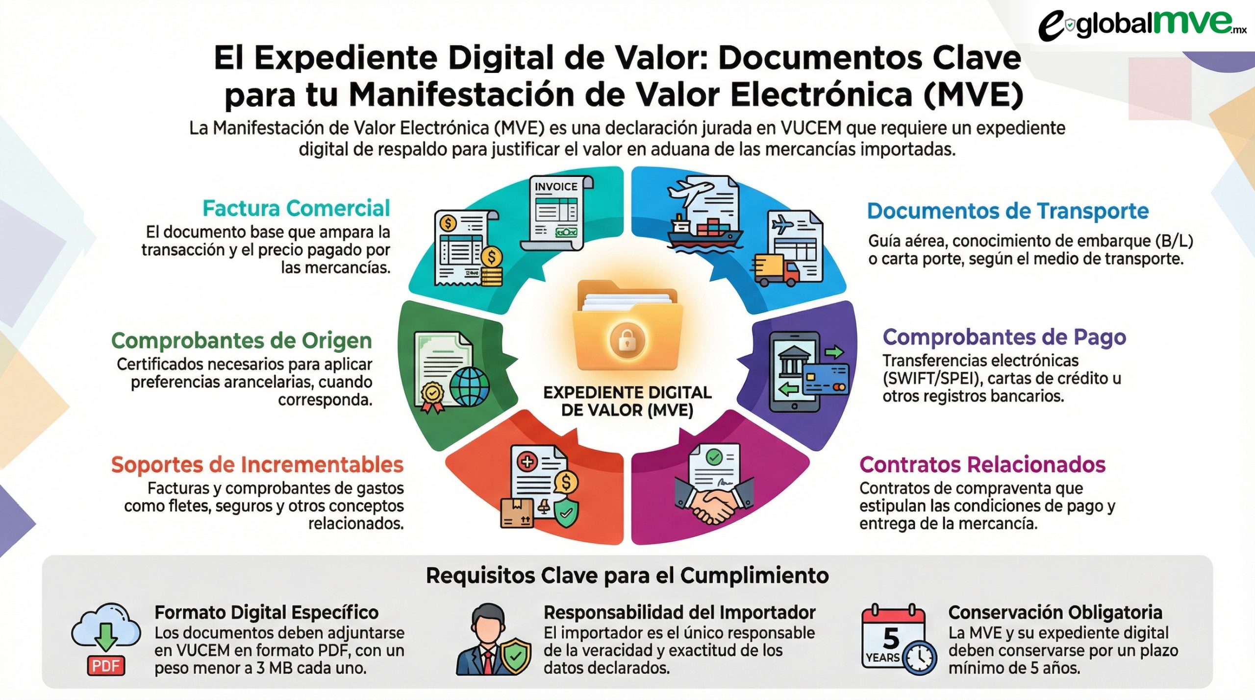 Sin embargo, la coherencia numérica es insuficiente sin el respaldo del “Expediente Digital“. La nueva fiscalización exige que cada Incrementable o Decrementable tenga un espejo documental. No basta con declarar un ajuste; se debe integrar al expediente el contrato de compraventa que justifique la transferencia de riesgo, la póliza de seguro que ampare la cobertura declarada y la factura del transportista que coincida con los montos ajustados. La integración correcta de estos documentos complementarios es lo que convierte una simple declaración de valor en una operación aduanera blindada y transparente.